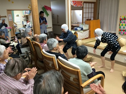 今回は、近所のみなさんに寝たきりの利用者さんの救助を想定して、担架での救出訓練を初めて行いました。ニュースではこのことを中心に放映がありました。