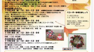 2025年11月の陽だまりサロン(pdf) 2025年11月のイベント ※詳しい内容、参加・予約方法、料金などの詳細はチラシをご覧ください。 お話とリコーダーのひとときを 11月6日(木)13:30~14: […]